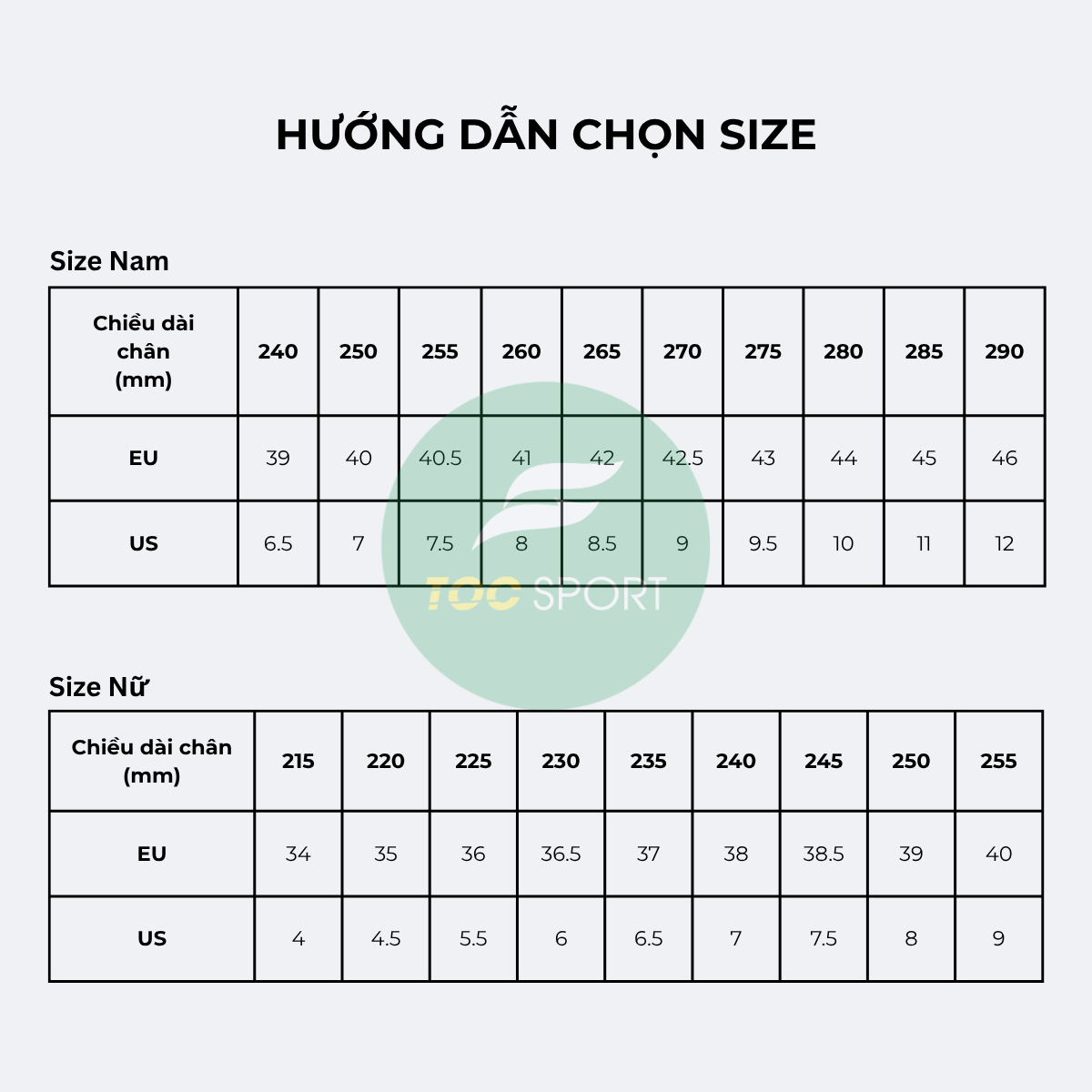 Hướng dẫn chọn size - Bảng size giày BMAI