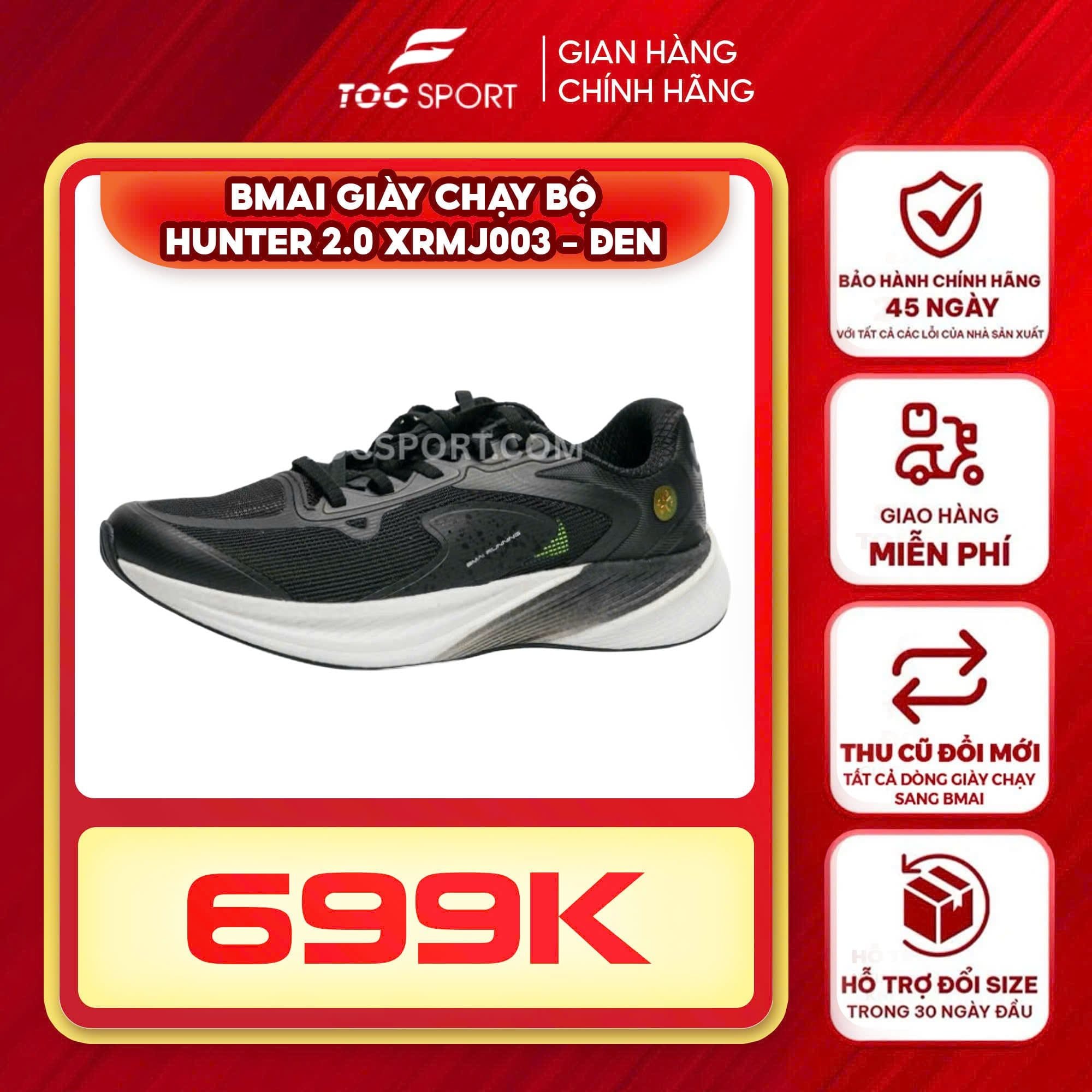 Nếu bạn đang tìm một đôi giày chạy bộ BMAI Hunter 2.0 đen vừa nhẹ, vừa bền, vừa đẹp thì đây chính là lựa chọn không thể bỏ qua. Hãy đặt mua ngay tại Tốc Sport để nhận hàng chính hãng, giá tốt và chính sách bảo hành uy tín.